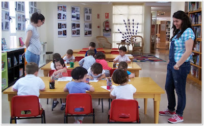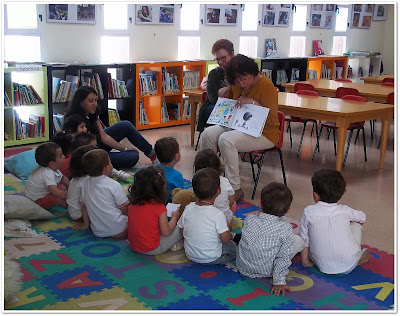 Per finalitzar la visita a la Biblioteca van poder gaudir dels llibres' triar els que més els interessaven' mirar-los' fullejar-los' rebuscar entre les prestatgeries les històries que els atreien i contar-se’ls entre ells tal com si foren contacontes.